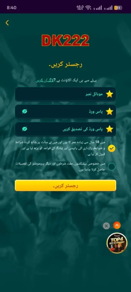 First, visit the official DK222.PK website using your mobile browser. You will see a Download button on the homepage. Tap on it and allow the app to download on your device.